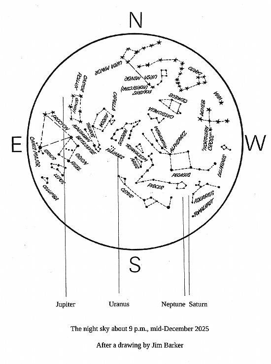 I began writing this column in early 1983 at the suggestion of the late Chris Boyce. At that time the Post Office would allow 1000 free mailings to start a new business, just under the number of small press newspapers in the UK at the time. I printed a flyer with the help of John Braithwaite (of Braithwaite Telescopes) offering a three-part column for £5, with the sky this month, a series of articles for beginners, and a monthly news feature. The column ran from May 1983 to May 1993 in various newspapers and magazines, but never in more than five outlets at a time, although every one of those 1000-plus papers would have included an astrology column. Since then it’s appeared sporadically in a range of publications including The Southsider in Glasgow and the Dalyan Courier in Turkey, but most often, normally three times per year, in Jeff Hawke’s Cosmos from the first issue in March 2003 until the last in January 2018, with a last piece in “Jeff Hawke, The Epilogue” (Jeff Hawke Club, 2020). It continues to appear monthly in Troon's Going Out and Orkney News, with an expanded version broadcast monthly on Arransound Radio since August 2023